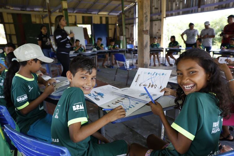 “O que a gente faz aqui é com que eles identifiquem o espaço deles a partir da leitura. Explicamos, não pela escrita em si, mas pela fala, pelos desenhos, por jogos. Assim, eles conseguem identificar as letrinhas com aquilo que eles vivenciam diariamente”, explica a professora alfabetizadora Pâmela Gonsalves. As aulas fazem parte de uma das iniciativas do projeto Mangues da Amazônia, o AlfaMangue.